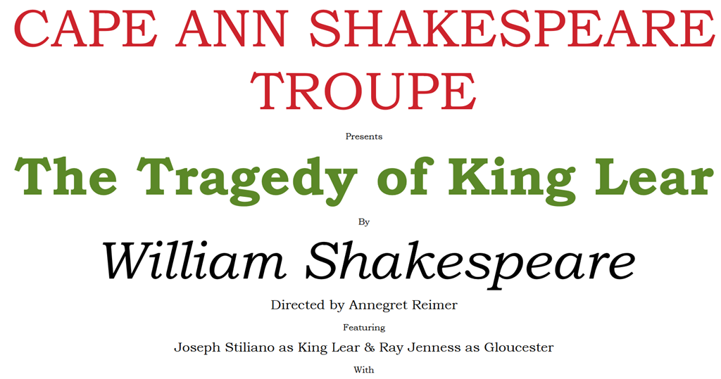 Gorton Theatre (home of Gloucester Stage) 267 E. Main St., Gloucester