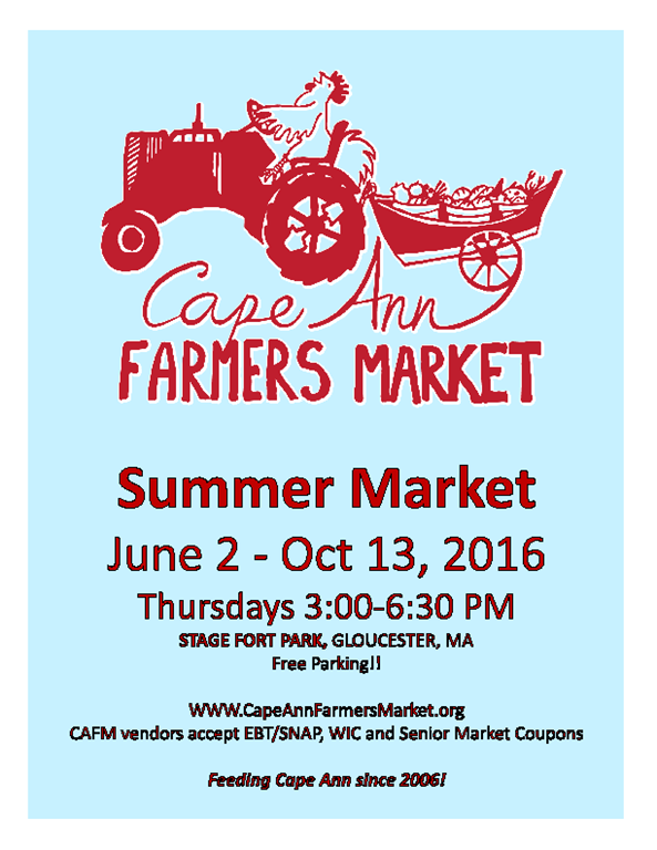 Cape Ann Farmers Market Opens This Week June 2- October 13, 2016