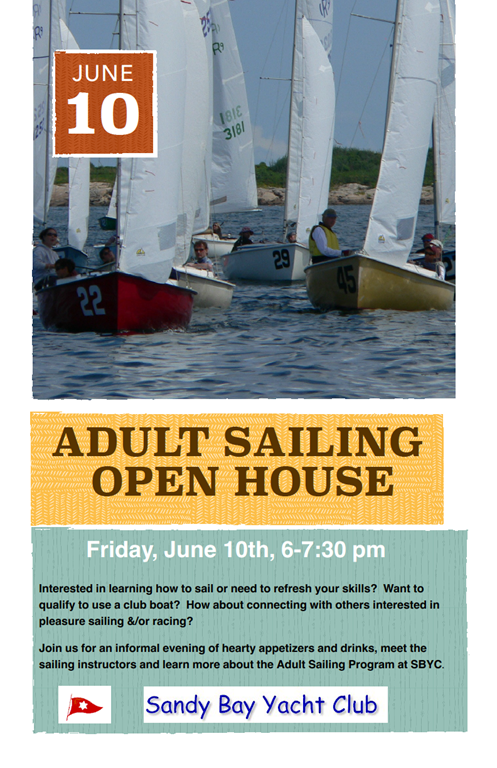 Adult Sailing Open House At Sandy Bay Yacht Club June 10th Image ~ June 3, 2016 ~ Joey Ciaramitaro Share this: Click to share on X (Opens in new window) X Click to share on Facebook (Opens in new window) Facebook Like Loading...