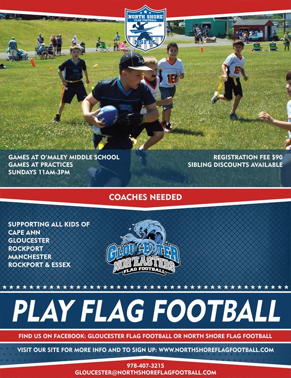 Coaches Needed- Gloucester Nor’Easters Flag Football September 5, 2016 ~ Joey Ciaramitaro www.northshoreflagfootball.com 978-407-3215 Share this: Click to share on X (Opens in new window) X Click to share on Facebook (Opens in new window) Facebook Like Loading...