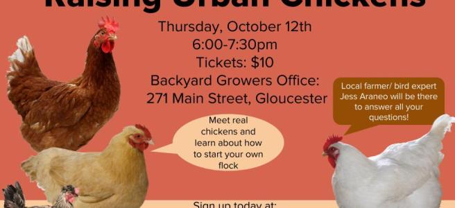 Come join Backyard Growers on October 12th as we partner with local chicken farmer, Jess Araneo as we go over the ins and outs of chicken raising, and even get to meet a bird or two!