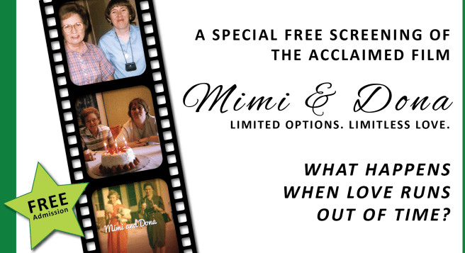 SeniorCare Inc. presents Mimi & Dona, on Tuesday, January 9, 2018 at 7:30 p.m. at the Cape Ann Cinema, 21 Main Street in Gloucester, MA. The film will be followed by a discussion and cocktail hour with light appetizers. This presentation is sponsored by The Residence at Riverbend with additional support from Tufts Health Plan Foundation.