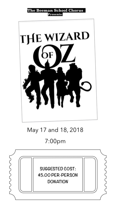 Beeman School Presents: The Wizard of Oz May 16, 2018 ~ coliecatherine Share this: Click to share on X (Opens in new window) X Click to share on Facebook (Opens in new window) Facebook Like Loading...