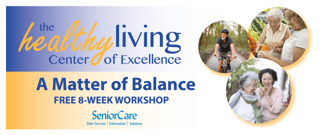 SeniorCare Inc. will host a free 8-week workshop, A Matter of Balance, at their offices located at 49 Blackburn Center in Gloucester, MA, on Mondays, starting on September 10 and ending November 5, 2018. Each session will be held from 1:00 pm to 3:00 pm.