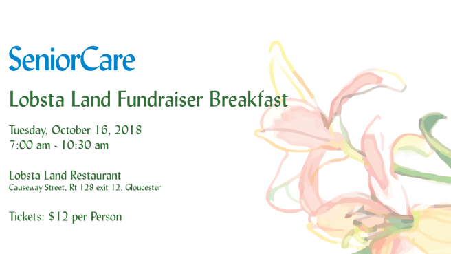 SeniorCare Inc. will hold its annual autumn fundraising breakfast at Lobsta Land Restaurant, located on Causeway Street in Gloucester (Route 128, exit 12) on Tuesday, October 16, 2018, from 7:00 a.m. to 10:30 a.m. Tickets are $12 per person and include your choice of pancakes, French toast, eggs, or a fruit plate with yogurt. Tickets are available in advance online at www.seniorcareinc.org, by calling 978-281-1750, or may be purchased at the door. Proceeds from the breakfast will benefit the full spectrum of programs offered by SeniorCare.
