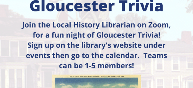 How much do you really know about Gloucester? Join the Sawyer Free Library’s Local History Librarian as she hosts a fun competitive evening of GLOUCESTER TRIVIA, this Thursday, March 11 from 6:30-7:30pm and find out!