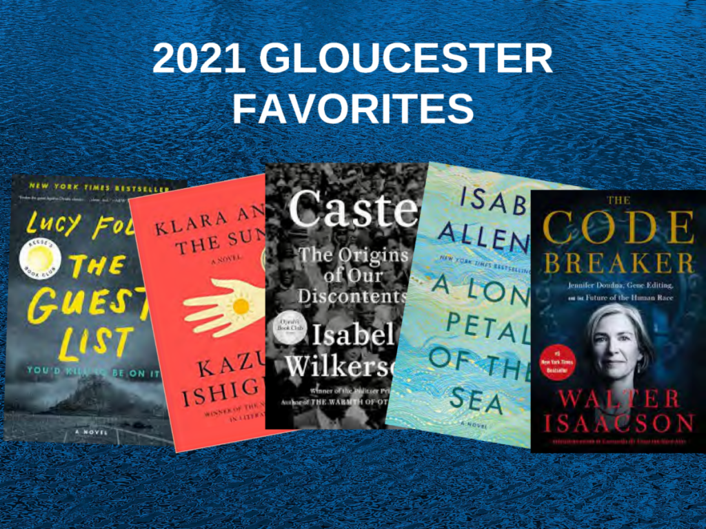 As the page turns on 2021, the Sawyer Free Library has compiled a list of some of the most popular books checked out this year by adults, teens, and children. Of the thousands of print, digital, and audiobooks that patrons borrowed, these were Gloucester’s favorites in 2021.