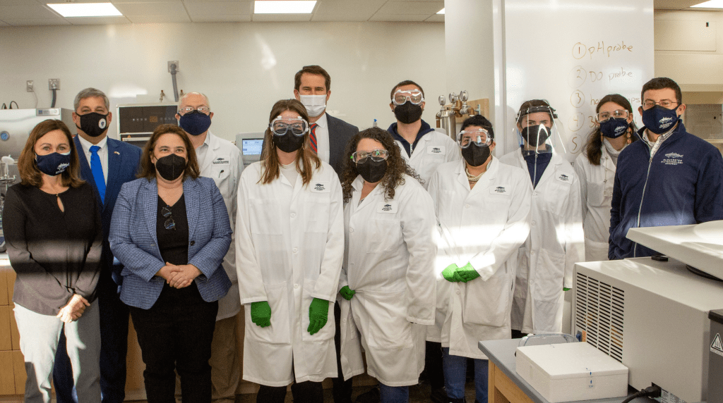 U.S. Congressman Seth Moulton visited GMGI in January along with State Senator Bruce Tarr, State Representative Ann-Margaret Ferrante, and the new mayor of Gloucester, Greg Verga. Donald G. Comb Science Director Andrea Bodnar toured the group through the research institute at 417 Main Street with Executive Director Chris Bolzan, and GMGI Board Member Bill Kane. The group finished the visit at the Academy where Education Director John Doyle and Lead Teacher Stephen Anderson walked them through the new biomanufacturing learning lab and previewed the new curriculum.