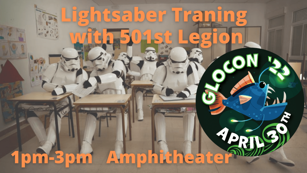 1:00-3:00 p.m. LightSaber Training – Dabble in the Dark Side or learn how to fight it with the 501st Legion! No Registration Needed.