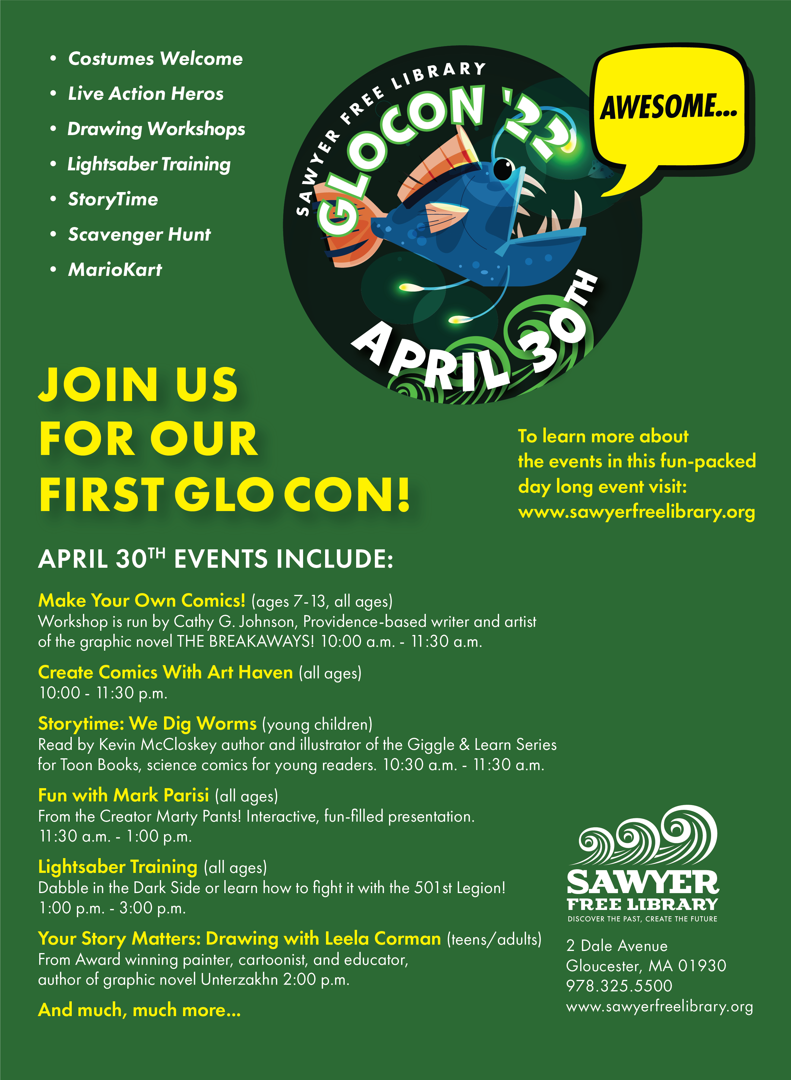 Sawyer Free Library’s GLO CON 22′ – SAVE THE DATE – Saturday, April 30