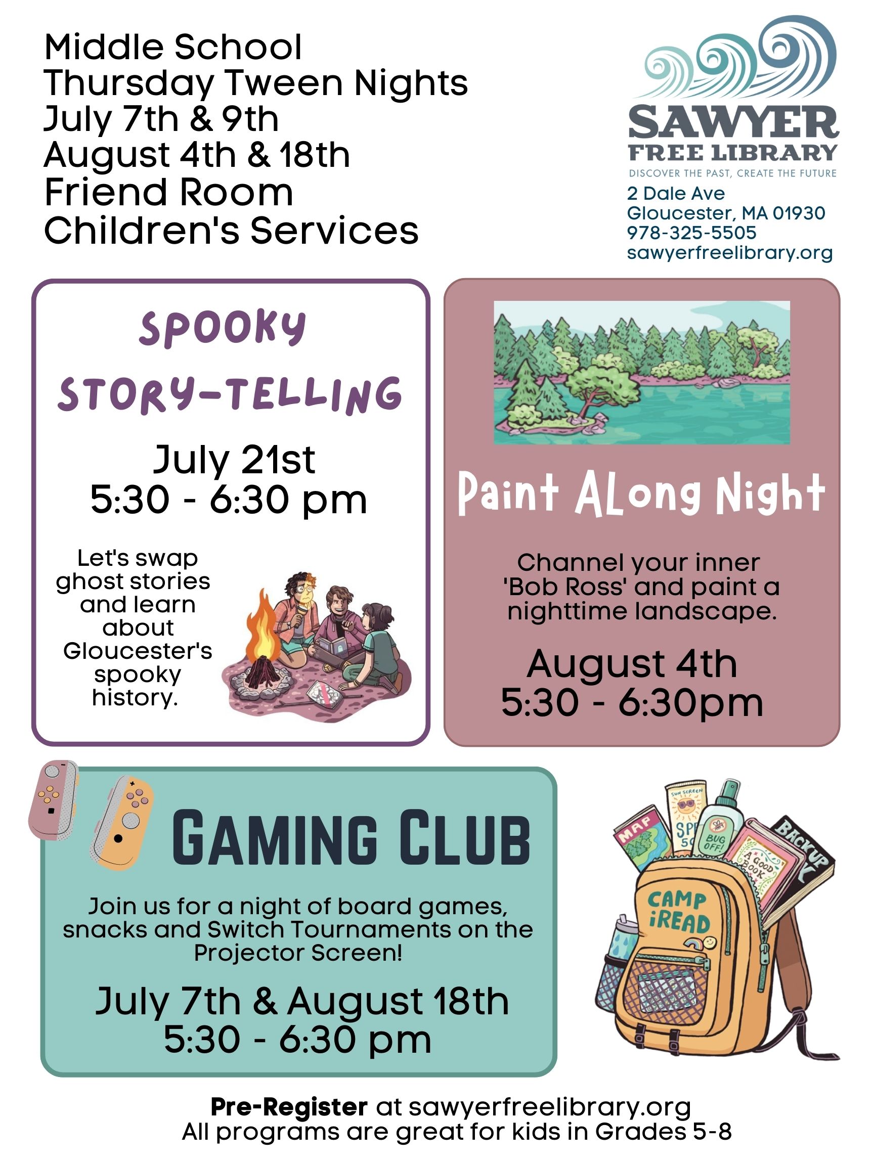 SFL will continue to offer a robust schedule of programs for residents of all ages throughout the community and is looking at off-site locations in Gloucester’s public schools, preschools, community centers, municipal spaces, local cultural institutions, parks, and other outdoor spaces. It will also work with its many community partners to host collaborative programming. In addition, the Library will continue to utilize and enhance its remote and online virtual programs.