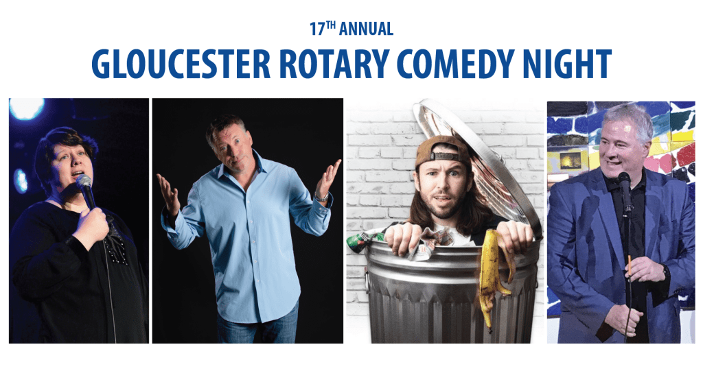 Tickets are now available to the annual Gloucester Rotary Comedy Night, featuring Carolyn Plummer, Jim Colliton, Jimmy Cash, and Boston’s Dave Rattigan on Thursday, August 31, 2023, at Cruiseport Gloucester. Doors open at 7pm and the show starts at 8pm.