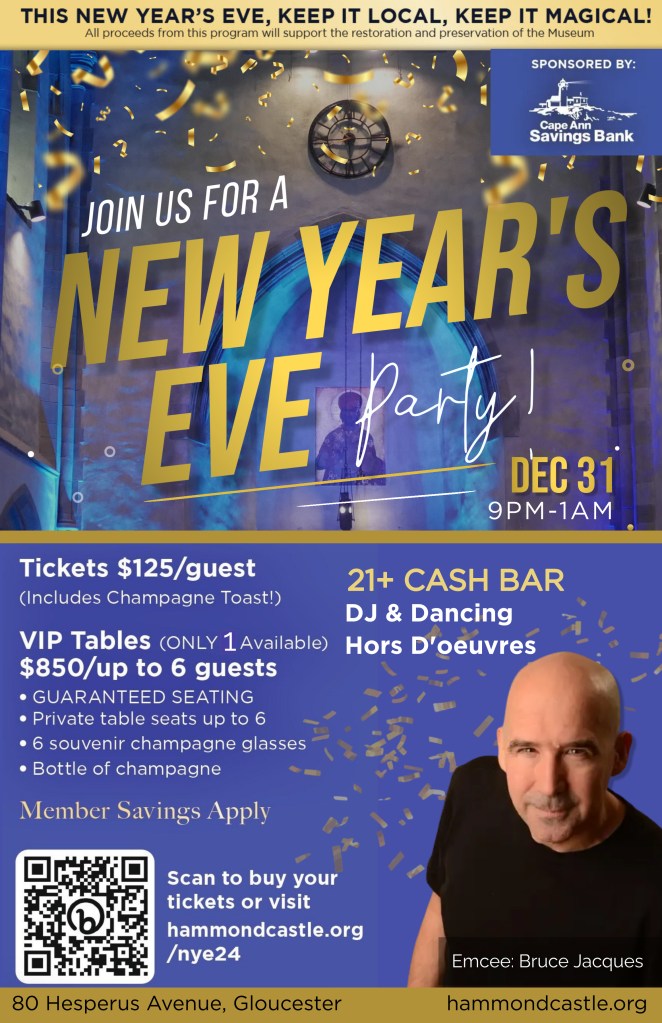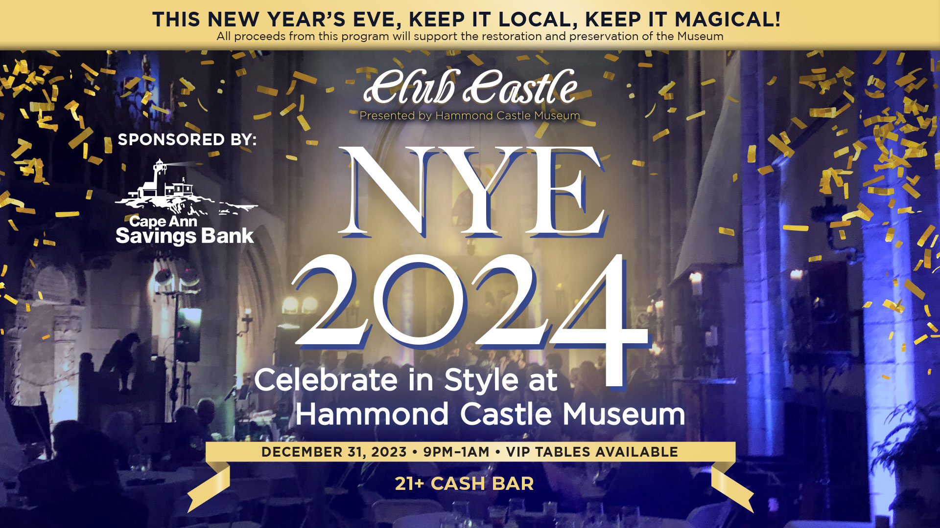 But the festivities don’t end there! Embark on a journey through Hammond Castle Museum’s many rooms, each possessing its own unique charm and rich history, enhancing the layers of delight woven into your New Year’s Eve celebration. Join us for an unforgettable night of music, laughter, and exploration, creating memories to carry into the promising dawn of the new year.