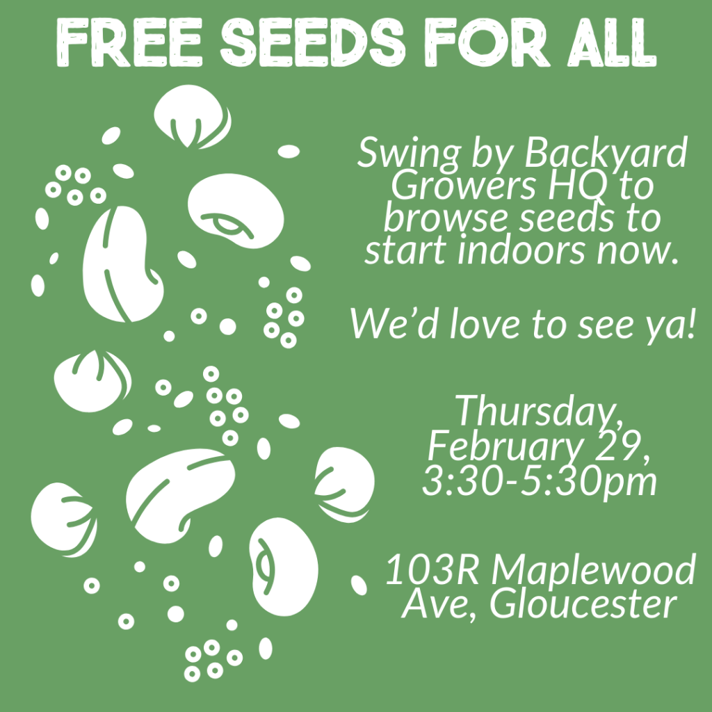 🌱🌿🍅 Join Backyard Growers for an ONLINE WORKSHOP and FREE SEED GIVEAWAY to jumpstart your growing season. We’ll be sharing tips and tricks, plus offering a live Q&A, on how to successfully start seeds indoors this winter, followed by a drop-in free seed giveaway at our offices at 103R Maplewood Ave in Gloucester.