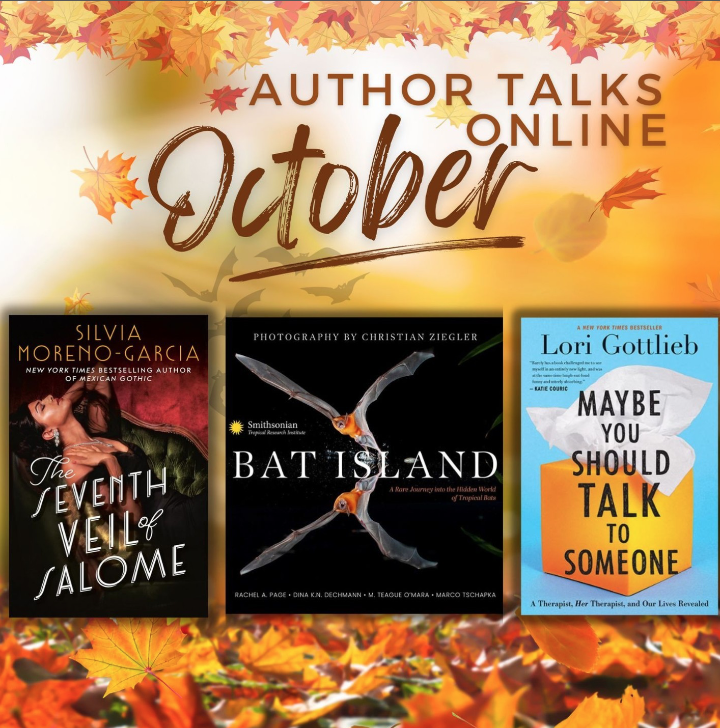 REGISTER TODAY FOR THE FOLLOWING VIRTUAL AUTHOR TALKS hosted by the Sawyer Free Library, for the links, register at sawyerfreelibrary.org. Wednesday, October 2, 2:00 to 3:00 pm, A Journey into the Hidden World of Tropical Bats with Scientists from the Smithsonian – Join us as we welcome three Smithsonian-affiliated scientists to explore the fascinating world … Continue reading October Author Talks Online with the Sawyer Free Library
