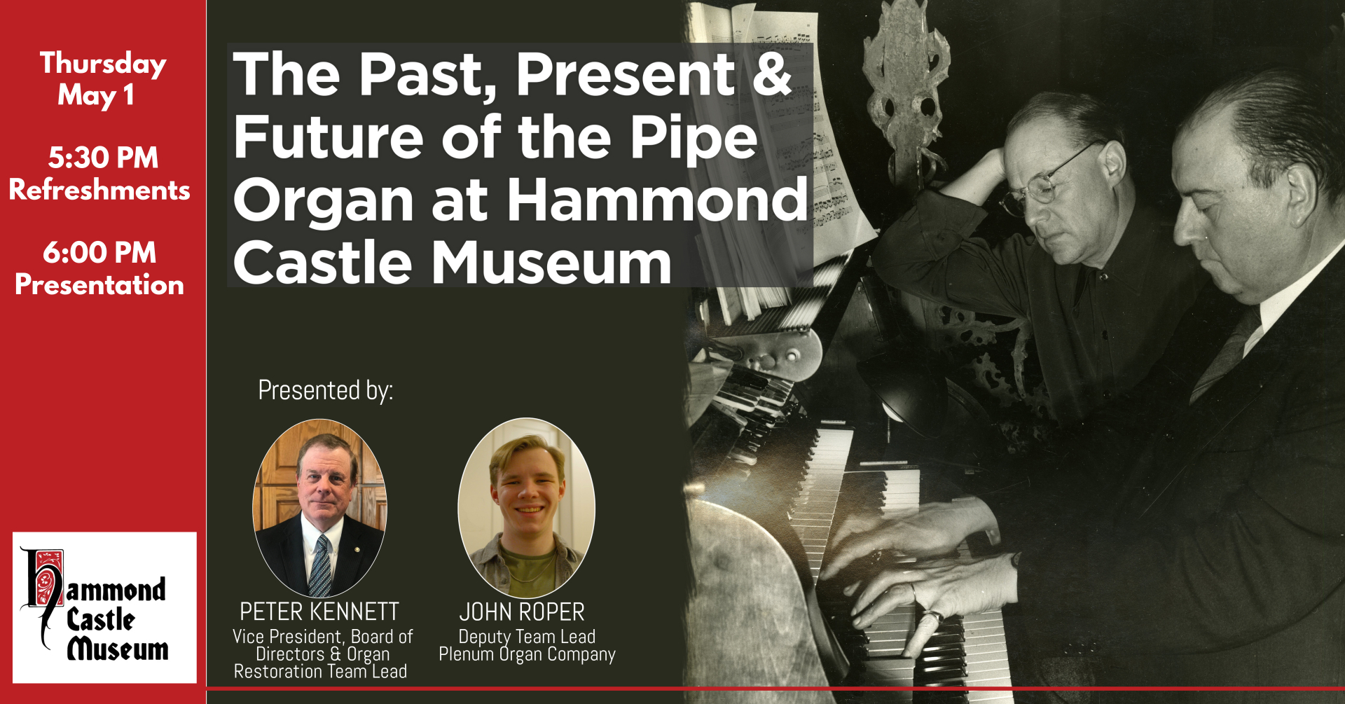 This presentation will be led by Peter Kennett, Vice President of the Board of Directors at Hammond Castle Museum and Organ Restoration Team Lead, alongside John Roper, Deputy Team Lead from the Plenum Organ Company.