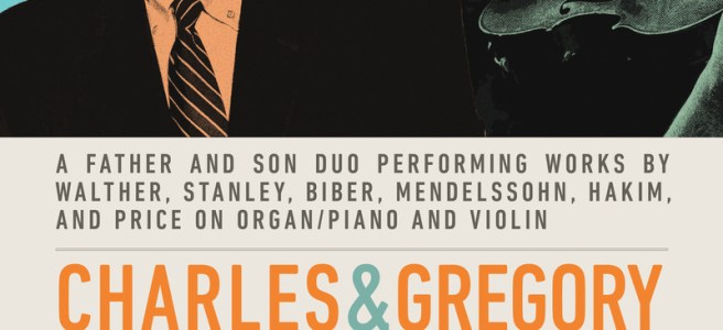The Gloucester Meetinghouse Foundation presents Charles Tompkins and son Gregory Tompkins in concert on Saturday evening, May 17th. Charles Tompkins (organ and piano) and Gregory Tompkins (violin) will perform in the Gloucester Unitarian Universalist Church. They are a dynamic and talented father and son duo who have performed in venues such as Trinity University in San Antonio, TX, Harvard Memorial Church in Cambridge, MA, and at the Piccolo Spoleto Festival in Charleston, SC.