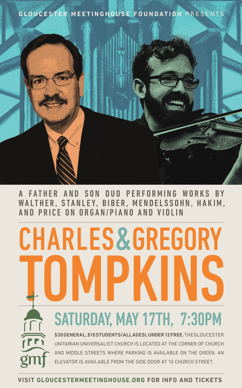 The Gloucester Meetinghouse Foundation will present the last concert of our 2024-25 season on Saturday, May 17th at 7:30pm with Charles and Gregory Tompkins, a talented father and son duo that will combine the sounds of the organ, piano and violin. This is a wonderful program you do not want to miss!
