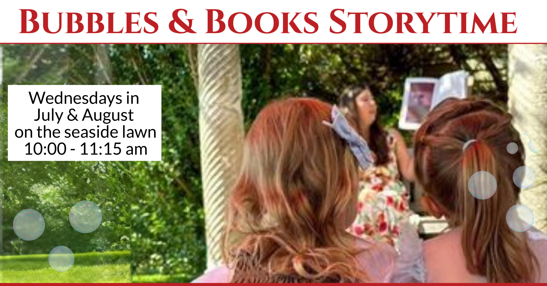 Doors: 10 am Stories begin about 10:20 am. Join us every Wednesday morning in July & August for Bubbles and Books on our seaside lawn. Fairytales do come true at castles by the sea!