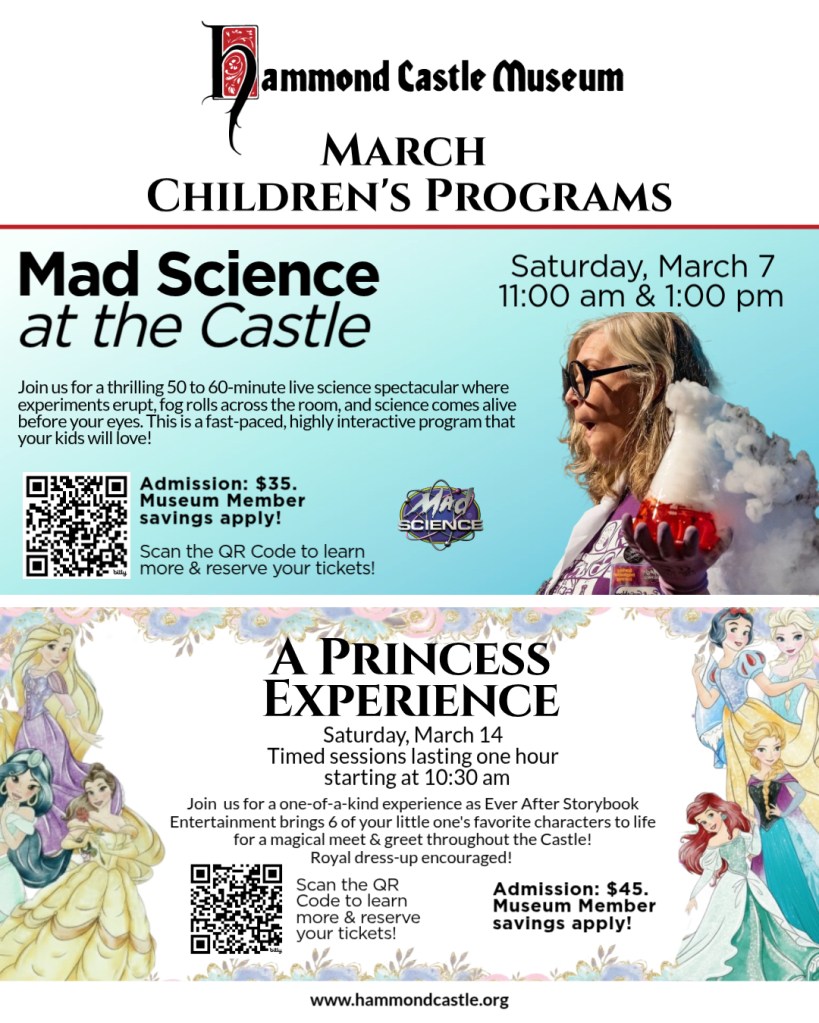 Join us tomorrow for Mad Science, the first of our two children’s programs this month at the Museum! Image ~ March 6, 2026March 6, 2026 ~ Hammond Castle Museum Share this: Share on X (Opens in new window) X Share on Facebook (Opens in new window) Facebook Like Loading...