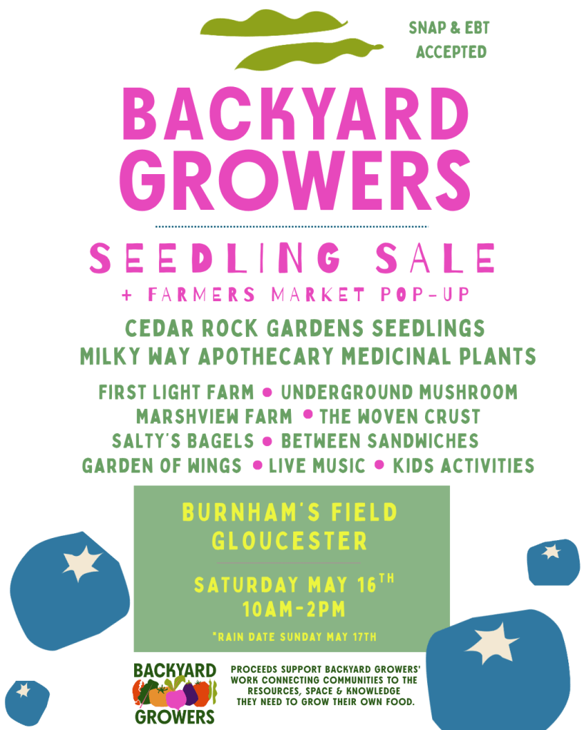 Plus, this year’s event will feature an early season pop-up Backyard Growcery, downtown Gloucester’s farmers market. In addition to seedlings, attendees can shop fresh, high-quality produce from local farmers, enjoy prepared foods and live music, join kids’ activities, enter exciting raffles, and celebrate growing food together in community.