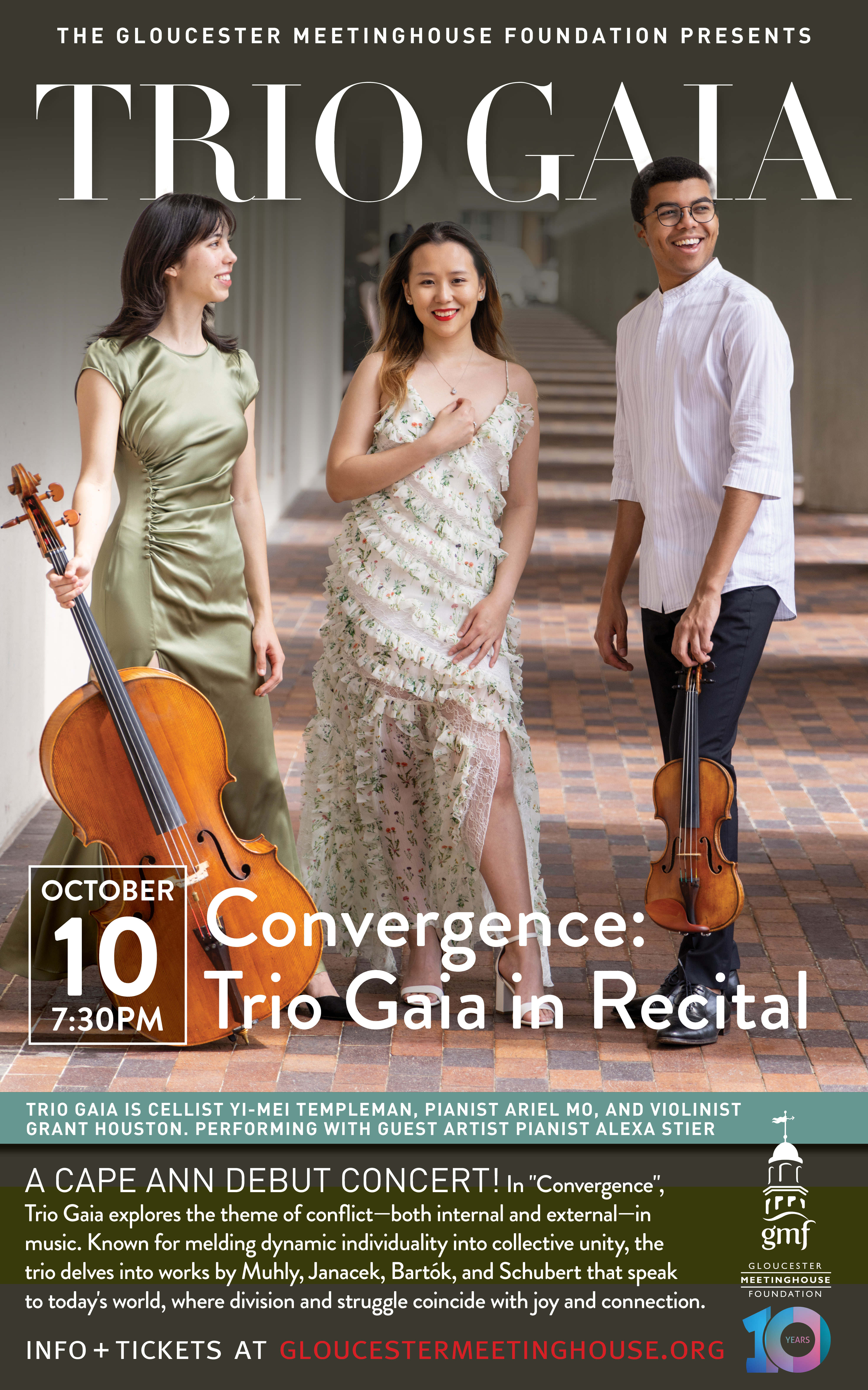 Tickets are available at the door and online (strongly recommended) with more information at: http://www.gloucestermeetinghouse.org. General admission is $30, students $10, under age 12 free.