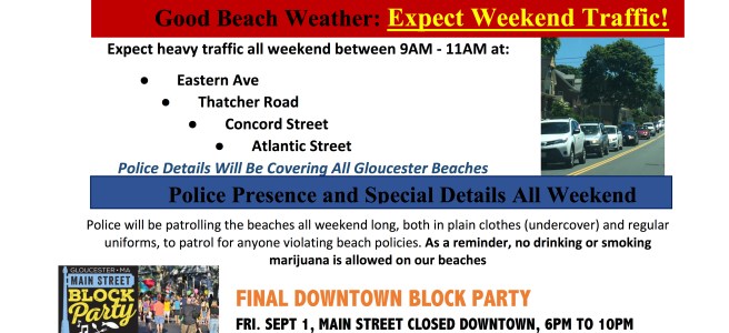 Gloucester’s Labor Day Weekend Events & Traffic Advisory for Sept 1 to Sept 4, 2017: