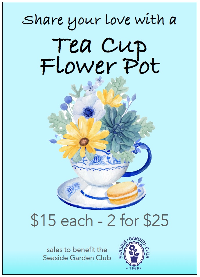 Seaside Garden Club’s annual plant auction will return on May 10, at the Manchester Community Center. There will be a selection of perennials, annuals, garden tools and art, and some surprises. This fundraiser supports the programs offered by the club throughout the year. We welcome new members of all types of gardeners from beginners to experienced… there is always something to learn and share.