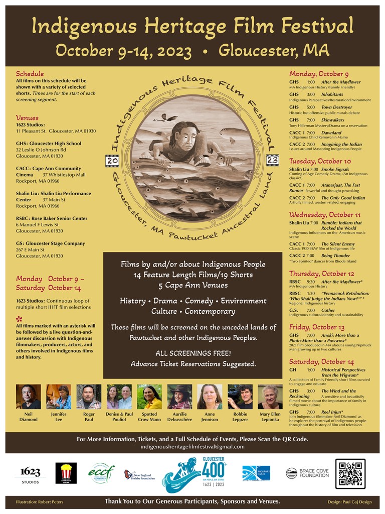 The Indigenous Heritage Film Festival is a week-long celebration of the Indigenous history and cultural contributions of Cape Ann’s earliest inhabitants. Indigenous Peoples have lived here since the last ice age – approximately 10,000 years ago! While much of the evidence of their lives has been lost, descendants and artifacts remain to tell stories with ageless voices that will carry on long into the future.