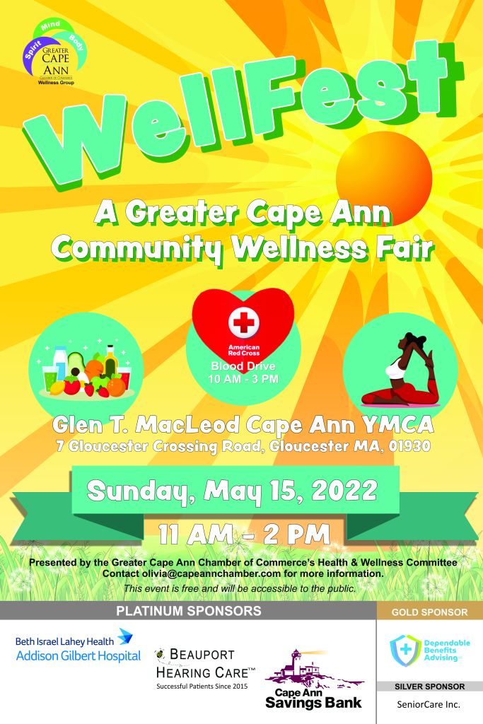 The Greater Cape Ann Chamber of Commerce’s Health and Wellness Group is proud to announce their first annual WellFest, a Greater Cape Ann Community Wellness Fair on Sunday, May 15 from 11am to 2pm at the Glen T. MacLeod Cape Ann YMCA. WellFest is an event that will showcase the Cape Ann region’s broad range of health and wellness services. From yoga and massage to general health resources and youth development, this event will provide something for people of all ages. In collaboration with WellFest, the Red Cross will be conducting a blood drive from 10am to 3pm.