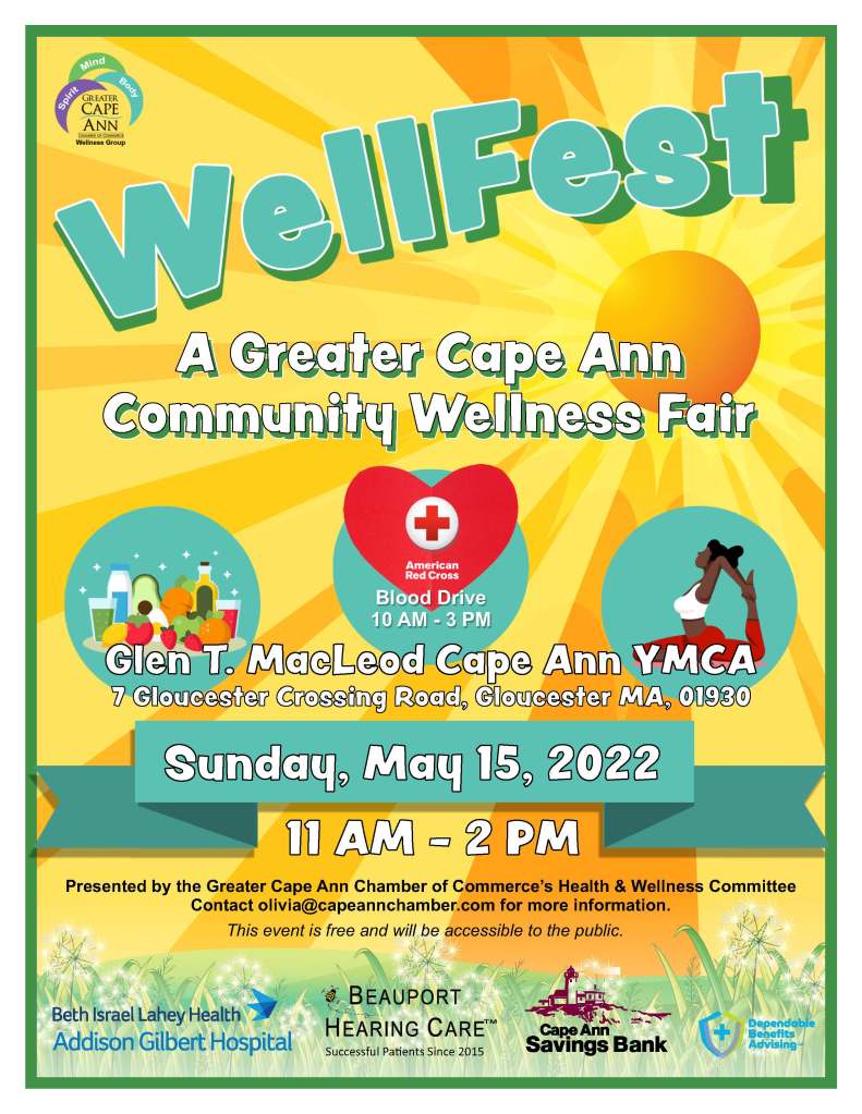 The event is free, open to people of all ages, and will be easily accessible. Mark your calendars, and gather up your friends and family for a beautiful Spring Sunday at WellFest! A Greater Cape Ann Community Wellness Fair. To learn more about WellFest visit capeannchamber.com.