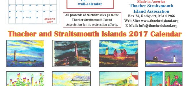 The new year is almost here. Help the Thacher Island Association raise funds for the restoration and preservation efforts on Thacher and Straitsmouth Islands. Buy our new Seasonal Moods Art Calendar created by local artist Suellen Wedmore.
