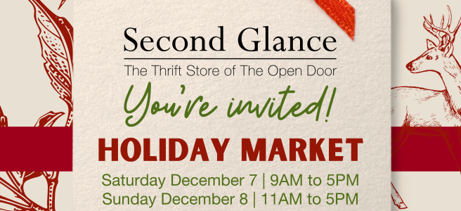 - SHOP and DONATE at Second Glance year-round. Revenue at the store raises funds for hunger-relief programs of The Open Door. Free referrals are also given to the community for those who need a little extra help.