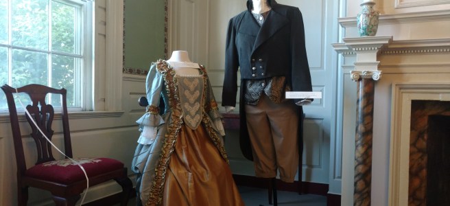 GLOUCESTER, MA –The Sargent House Museum is currently hosting eighteenth-century inspired fashion. Created for The Folklore Theatre Company’s 2015 production of “The Medium, or Virtue Triumphant” the four outfits on exhibit at the historic home are based on patterns for dresses and suits popular between 1780-1805.