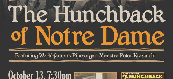 Peter Krasinski, organist extraordinaire, performs ‘The Hunchback of Notre Dame’ on Friday, October the 13th at 7:30pm